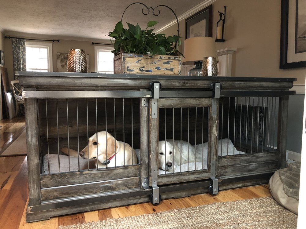 Also think about the material the crate is made from. There are lots of options when it comes to stylish dog crates.
